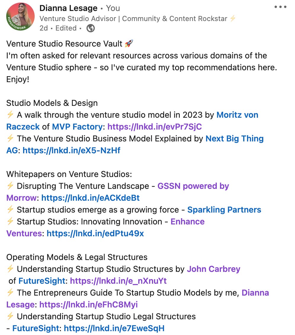 This particular post leveraged my “Resource Vault” and listed top articles in a variety of categories from Fundraising to Operating Models & Legal Structures.
