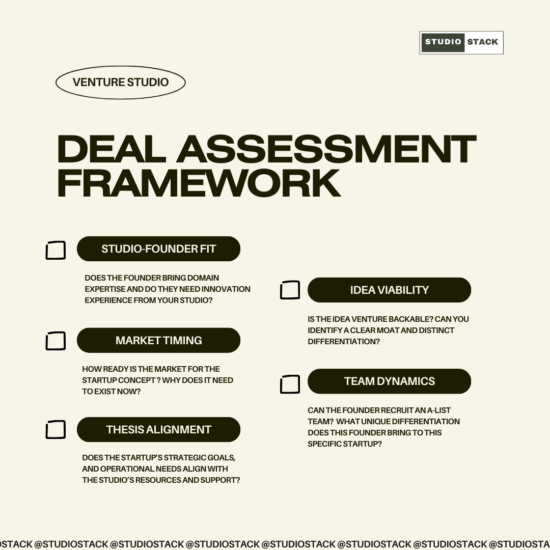That’s why I wrote an arrticle this week on how to craft a Venture Studio specific Deal Assessment Framework.